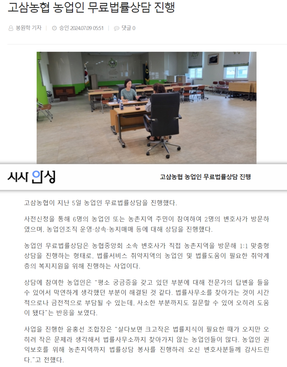 고삼농협 농업인 무료법률상담 진행 페이지 정보 작성자 최고관리자 댓글 0건 조회 1,121회 작성일 24-07-16 10:24 본문 관련링크 http://www.sisaanseong.com/news/articleView.html?idxno=21381 833회 연결 목록 이전글고삼농협, 일자리탐색(귀농귀촌)교육 24.07.16 다음글고삼농협, 공공형계절근로자를 위한 영화상영 24.07.16 댓글목록 댓글목록 등록된 댓글이 없습니다.